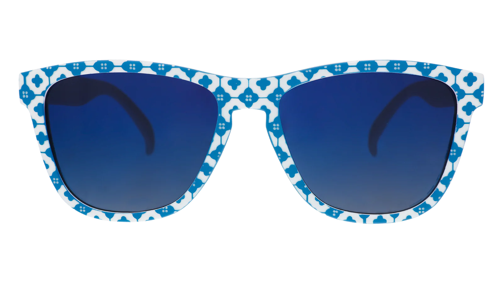 Limited Edition, textured blue-and-white tile-inspired shades with blue gradient lenses - These amazing shades are the real deal. Super-stylish & perfect for all your adventures! Be the envy of your friends this summer season!